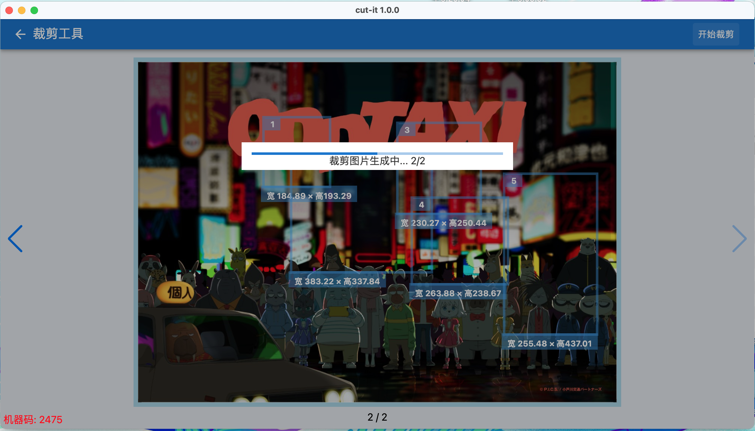 3.点击开始裁剪,裁切进度结束后弹出结果弹窗,打开所在文件夹后查看裁切结果。